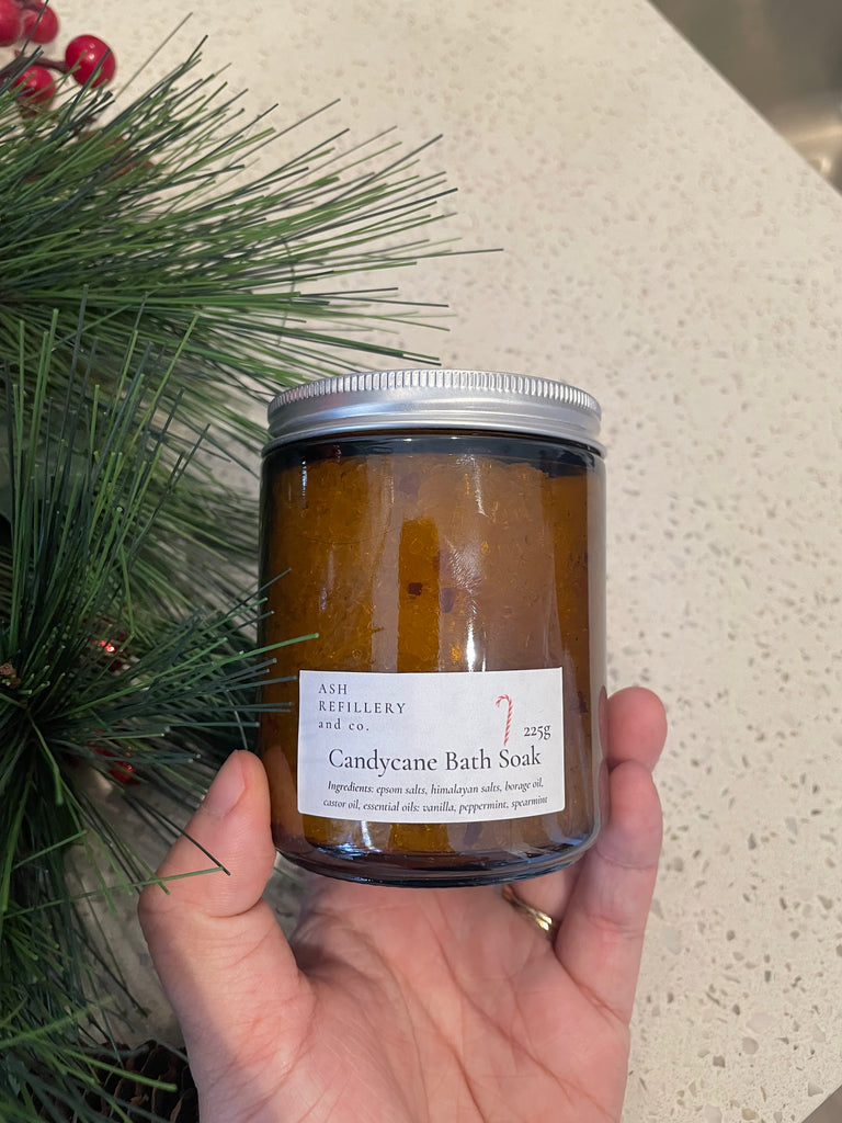 Ingredients: epsom salts, himalayan salts (candycane only), borage oil, castor oil, essential oils.