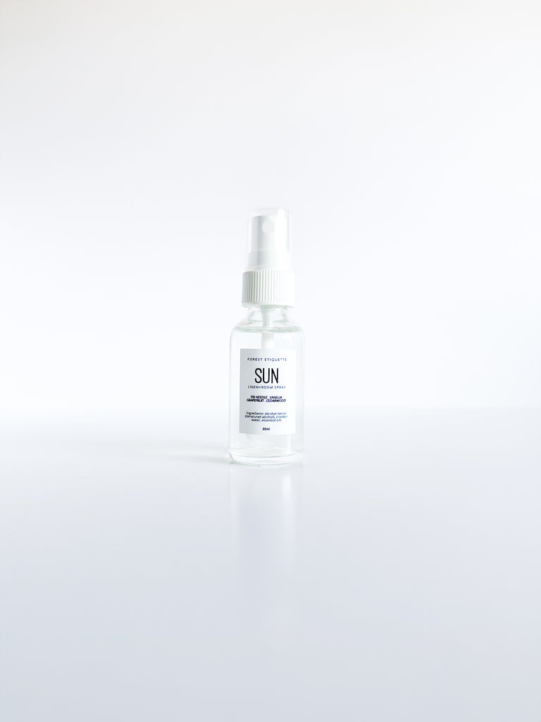 Sun: Alcohol Denat, Juniperus mexicana (Texas cedarwood) Oil, Citrus × paradisi (pink grapefruit) oil, Abies balsamea (balsam fir) oil, Vanilla planifolia (vanilla) bean oil