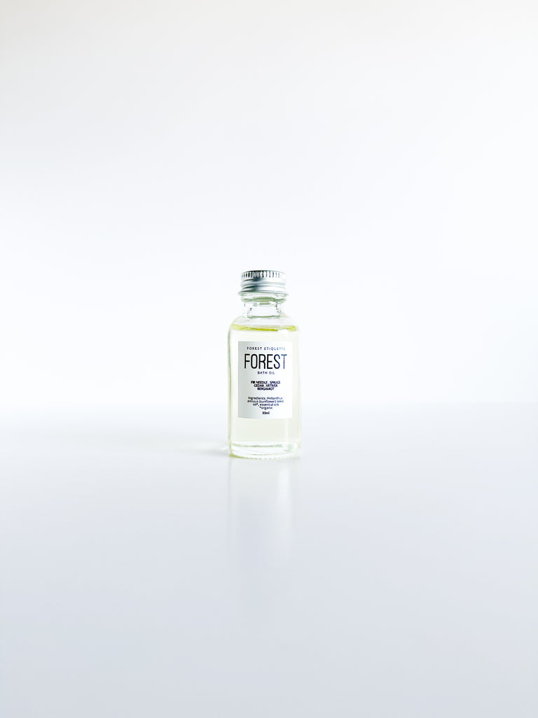 Forest: Helianthus Annuus (Sunflower) Seed Oil*, Tsuga Canadensis (Hemlock Spruce) oil, Citrus Bergamia oil, Chrysopogon Zizanioides oil, Juniperus Mexicana Wood oil, Abies Siberica Needle oil, Thuja Plicata Leaf oil *organic